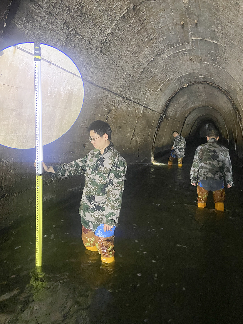 ▲進行滲流人工比測,并對滲流自動觀測設備進行維修養護