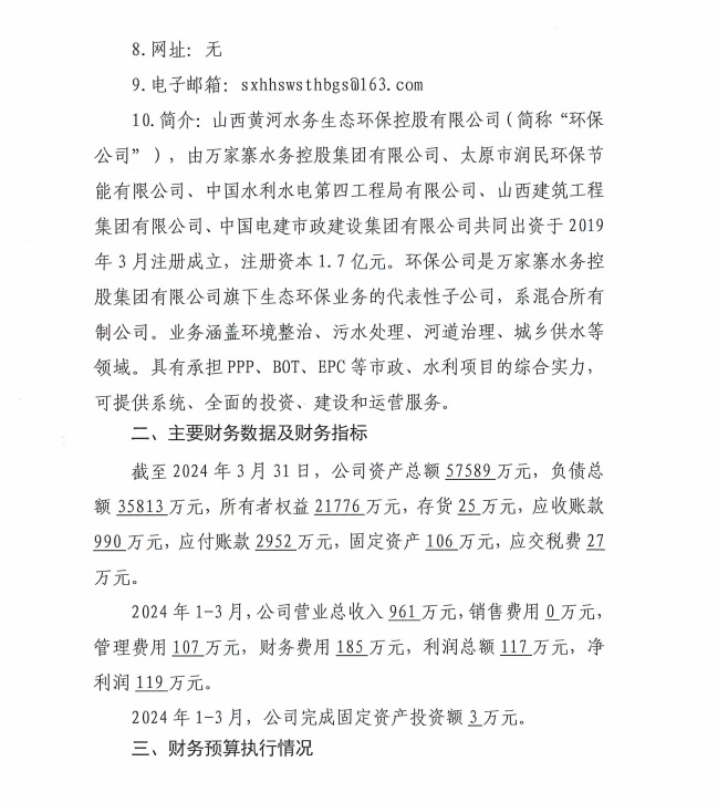 山西省水利建筑工程局集團有限公司2024年一季度信...