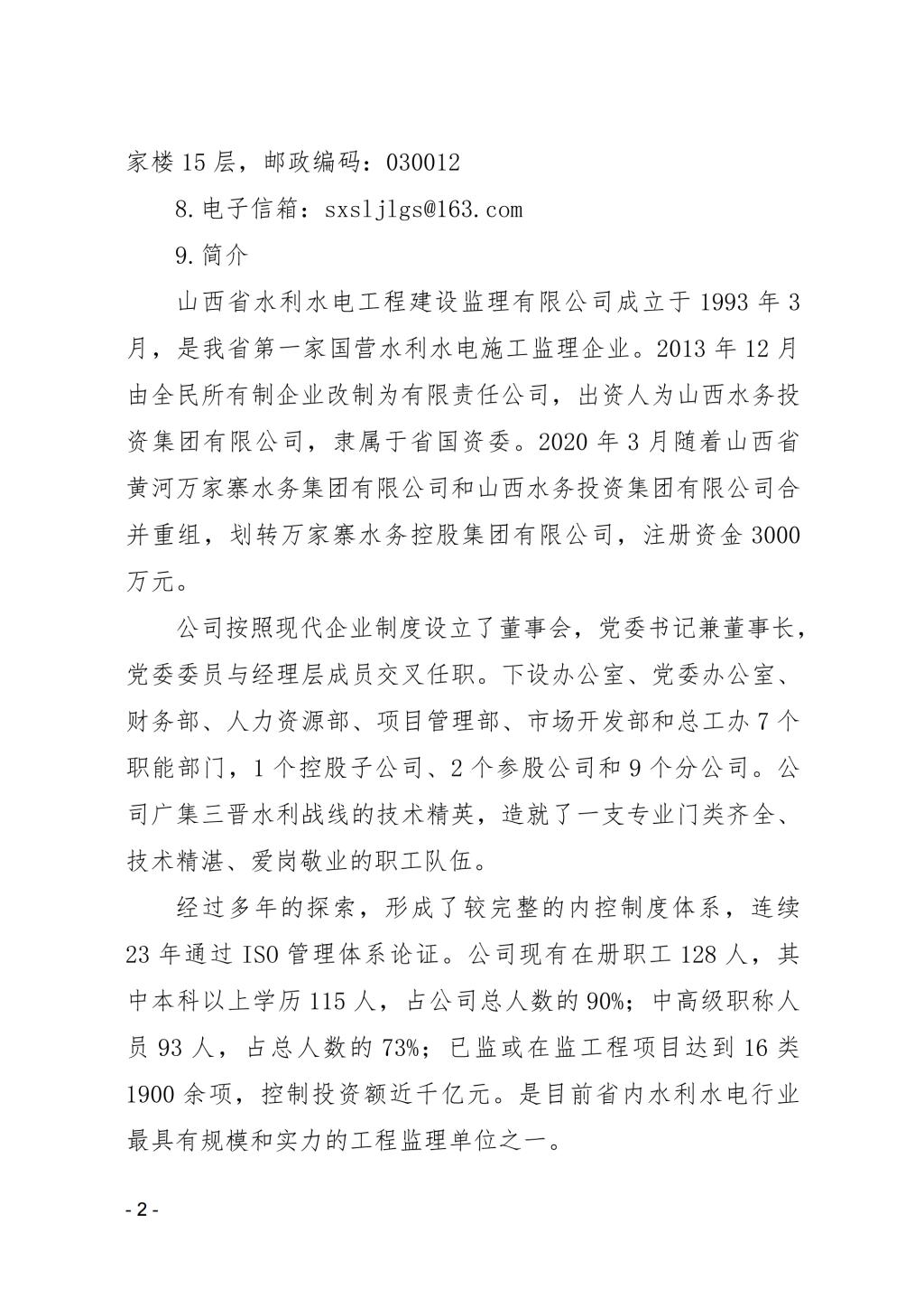山西省水利水電工程建設監(jiān)理有限公司