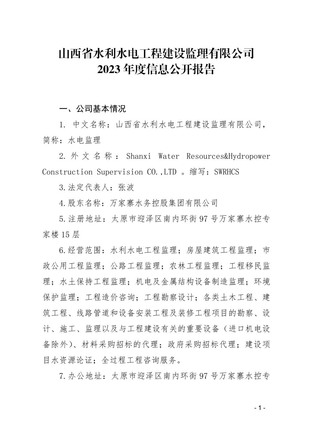 山西滹沱河管理有限公司2024年中期信息公開報告