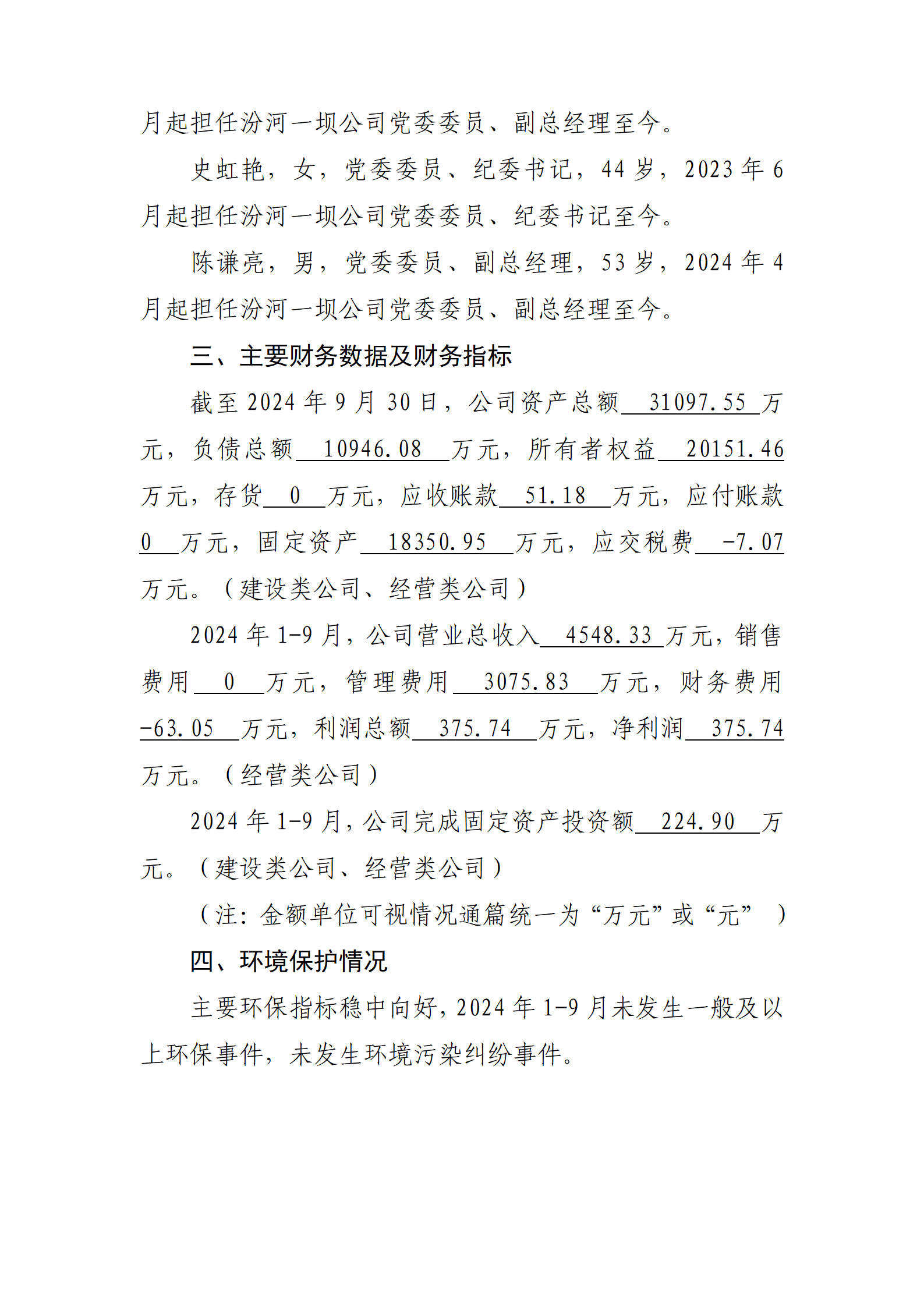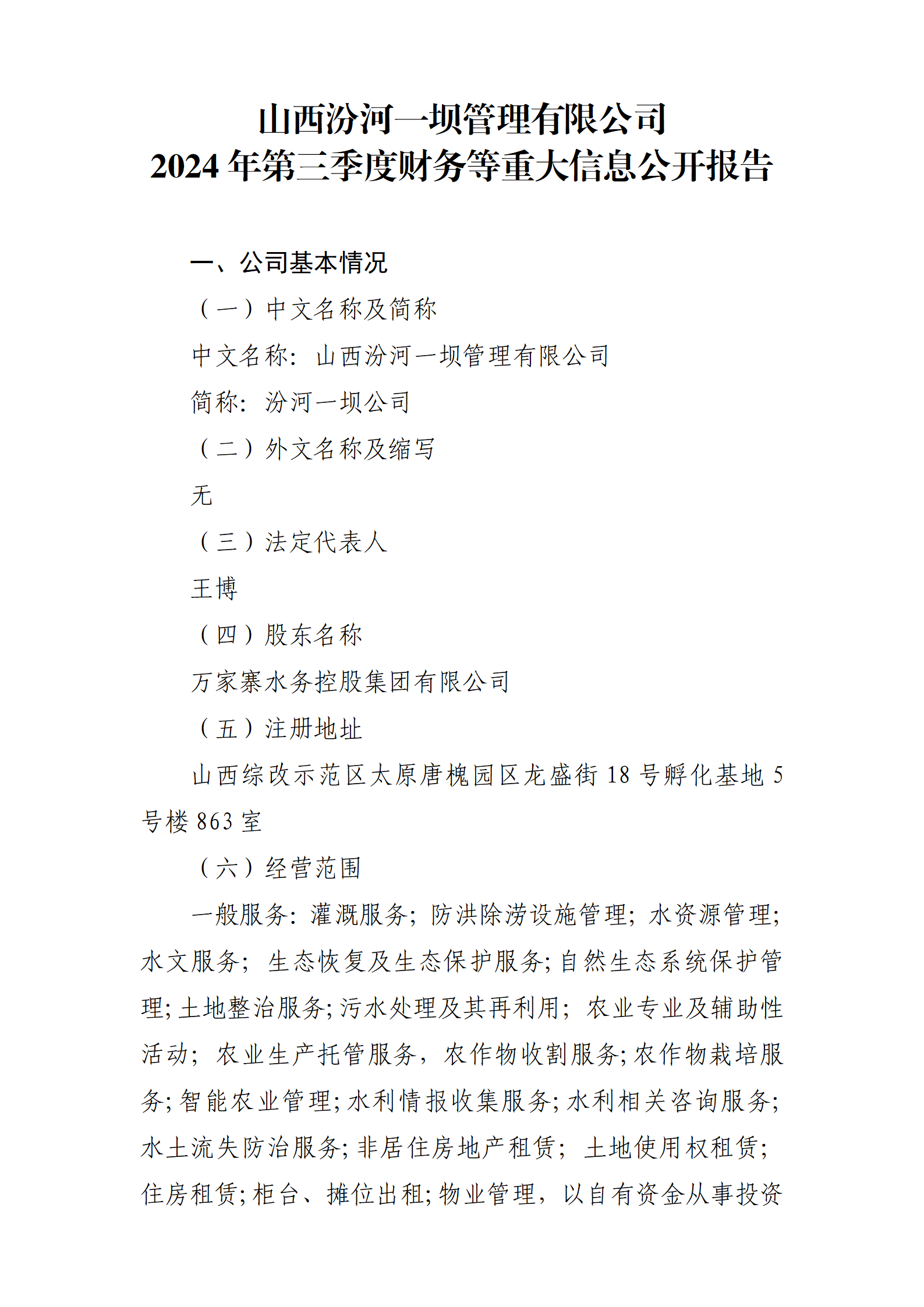 2024年第三季度財務等重大信息公開報告