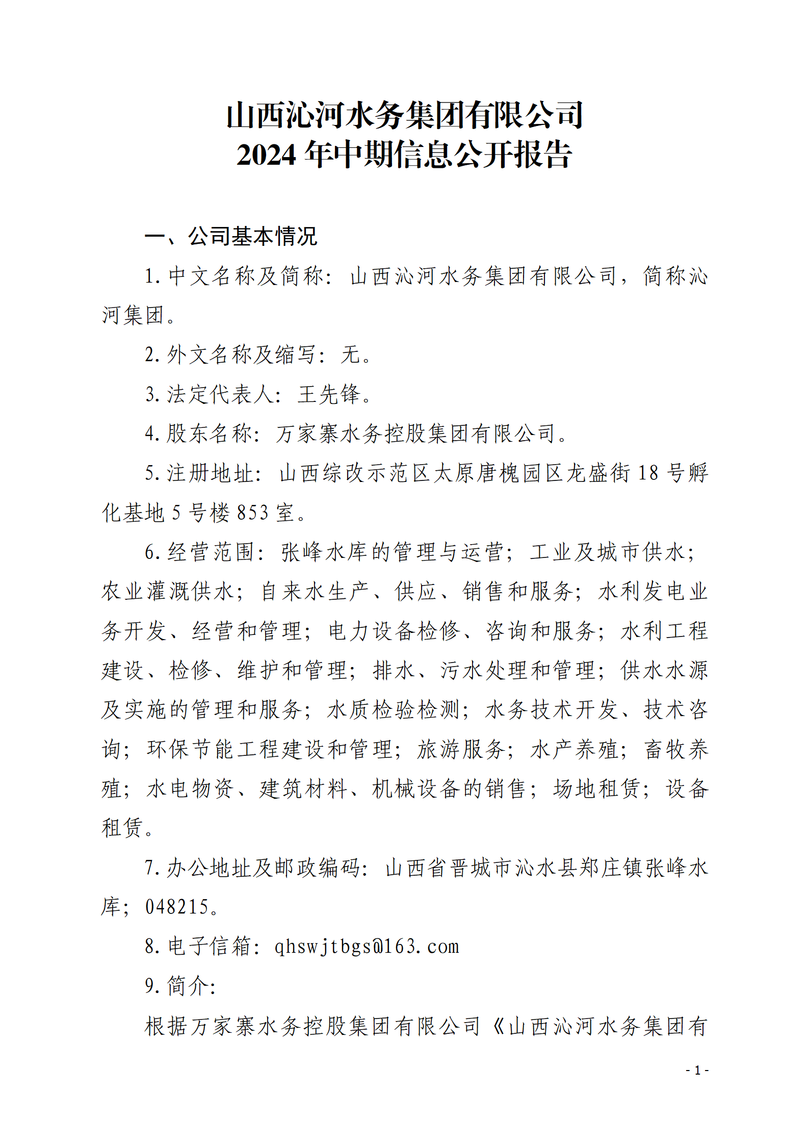 山西沁河水務集團有限公司