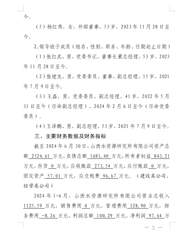 山西水資源研究所有限公司2024年第三季度信息公開...