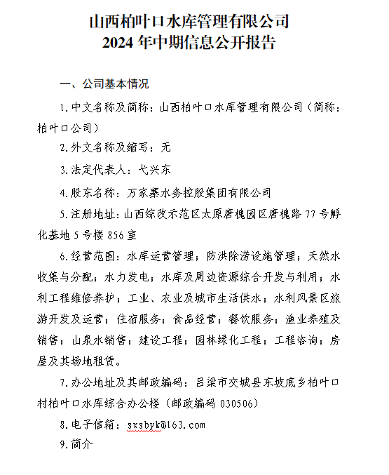 山西黃河水利工程咨詢有限公司2024年中期信息公開...