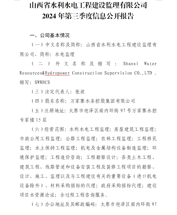 山西水利建設(shè)開發(fā)咨詢有限公司2024年第三季度信息...