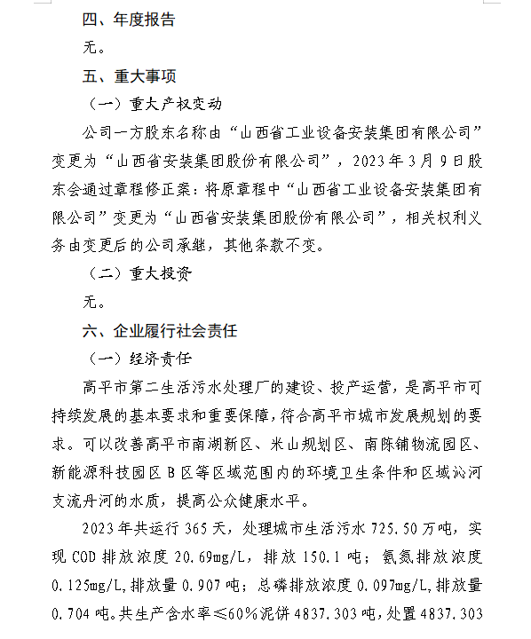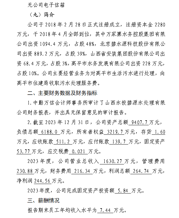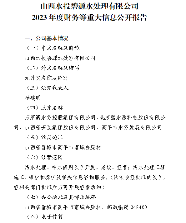 山西水投碧源水處理有限公司2024年中期信息公開報...